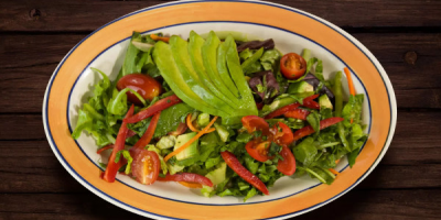 A refreshing mix of lettuce, tomato, and greens topped with ripe avocado — simple, light, and full of flavor