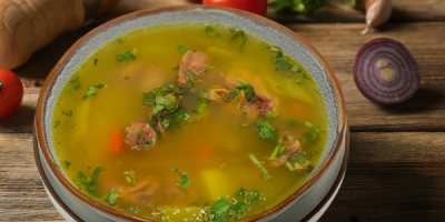 Light and flavorful chicken broth, served warm and seasoned with a touch of herbs — a comforting start or perfect side