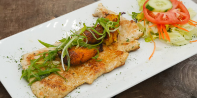 Grilled chicken breast topped with our house-made lemon cream sauce, served with white rice, crispy French fries, and fresh salad — bright, creamy, and satisfying