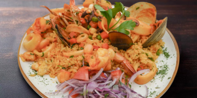 Flavorful blend of shrimp, calamari, mussels, and more, all simmered with seasoned rice and sautéed vegetables in a savory Latin-style sauce