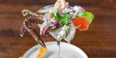Fresh mix of seafood, greens, and vegetables with a light citrus dressing — vibrant and full of Latin flavors